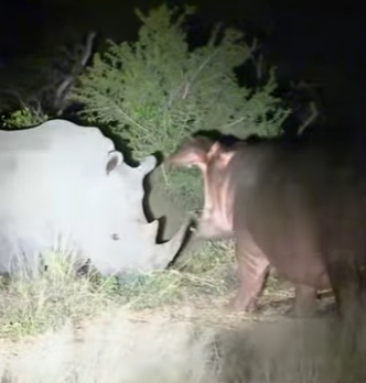 A2003002 A hippopotamus uses a rhinoceros horn to pick its teeth. (Parte 2)